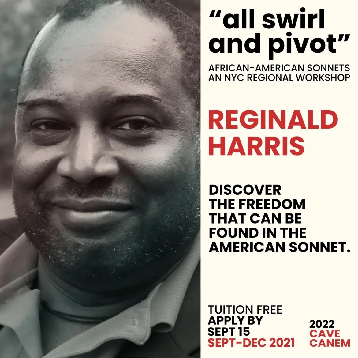 "all swirl and pivot": A Public Reading of Sonnets Monday, December 5, 2022 6:00 PM 9:00 PM Google Calendar ICS Cave Canem presents the Final Reading of Reginald Harris’ Fall Regional Workshop, showcasing fresh, published, and beloved poems written by participants. Readers include Judith Ohikuare, Tangie Mitchell, Skye Jackson, Iman Carter, and more.